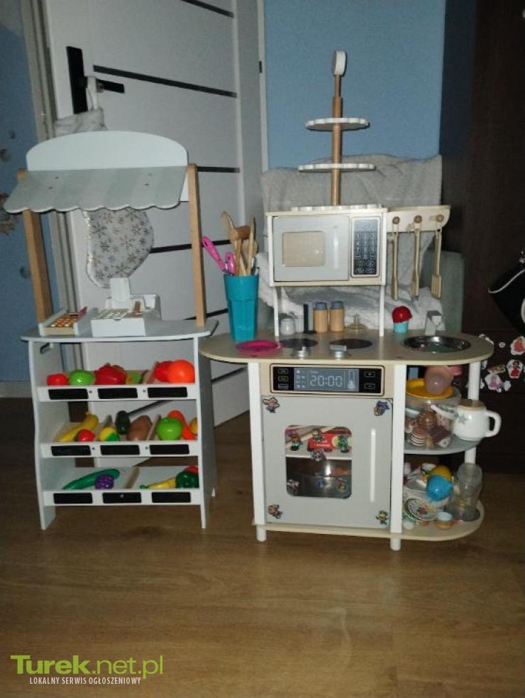 Sprzedam kuchnię drewnianą z wyposażeniem oraz sklep drewniany z kasą fiskalna i terminalem ,warzywa i owoce gratis, dodatkowo patera na ciasteczka,stan bardzo dobry, odbiór osobisty.Polecam:))