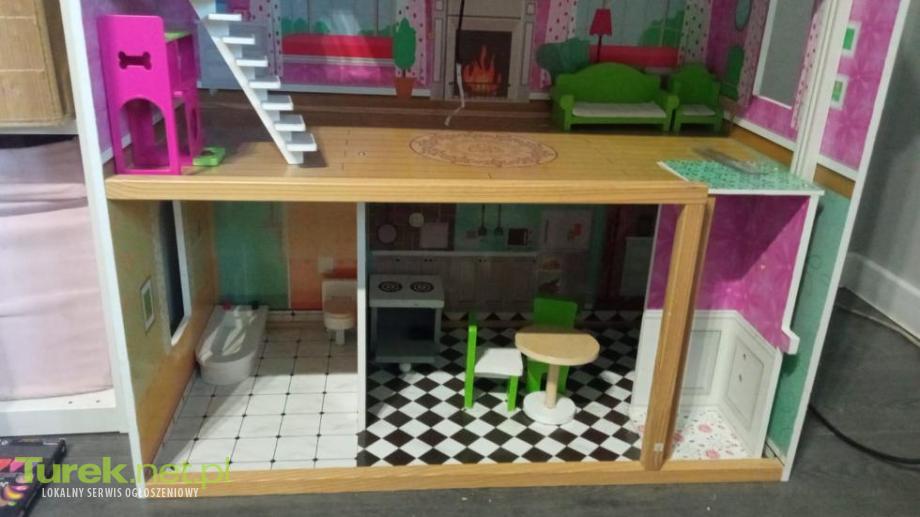 Na sprzedaż wyjątkowy, duży domek dla lalek wykonany z drewna, utrzymany w delikatnej, dziewczęcej kolorystyce. Domek jest solidny, stabilny i bardzo estetyczny – idealny do zabawy oraz jako ozdoba pokoju dziecięcego.