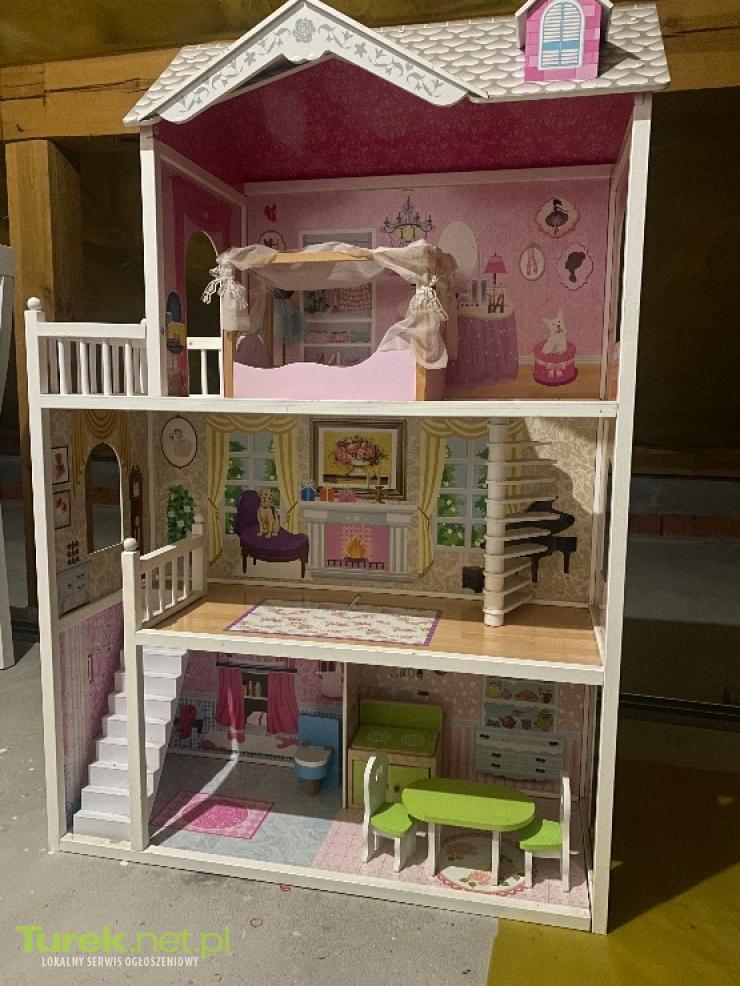Na sprzedaż wyjątkowy, duży domek dla lalek wykonany z drewna, utrzymany w delikatnej, dziewczęcej kolorystyce. Domek jest solidny, stabilny i bardzo estetyczny – idealny do zabawy oraz jako ozdoba pokoju dziecięcego.