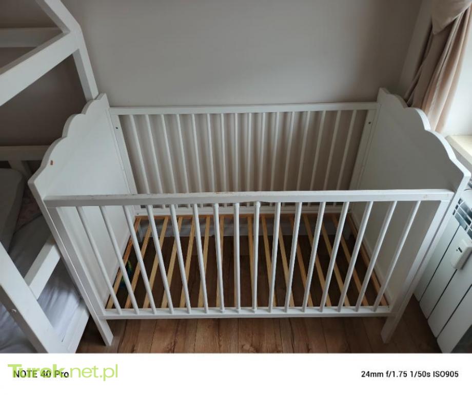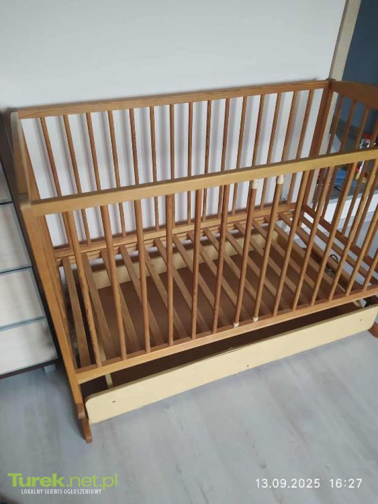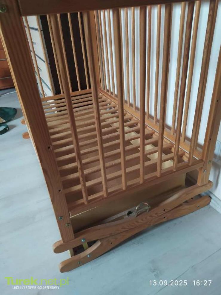 Sprzedam łóżeczko dziecięce drewniane, łóżeczko posiada funkcję kołyski i 3 stopniowa regulacje wysokości. Do łóżeczka w cenie dokładam 2 materace i 2 kpl pościeli.