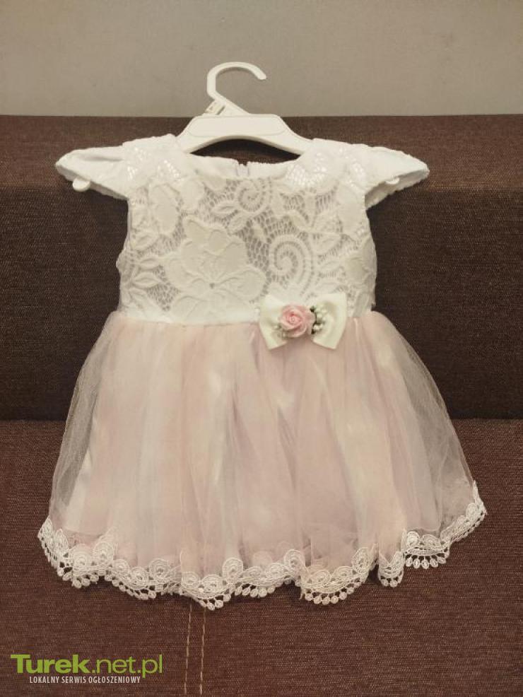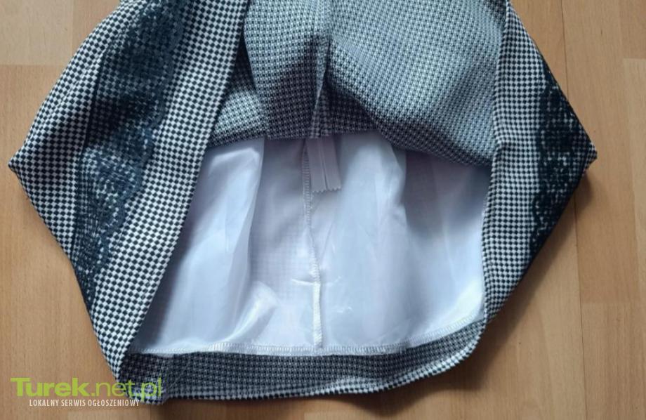 Nowa sukienka dziecięca w pepitke idealna na zakończenie roku lub inne uroczystości Długość całkowita 63 cm Pachy 35 cm x2 Pas 30 cm x2 Biodra luźne