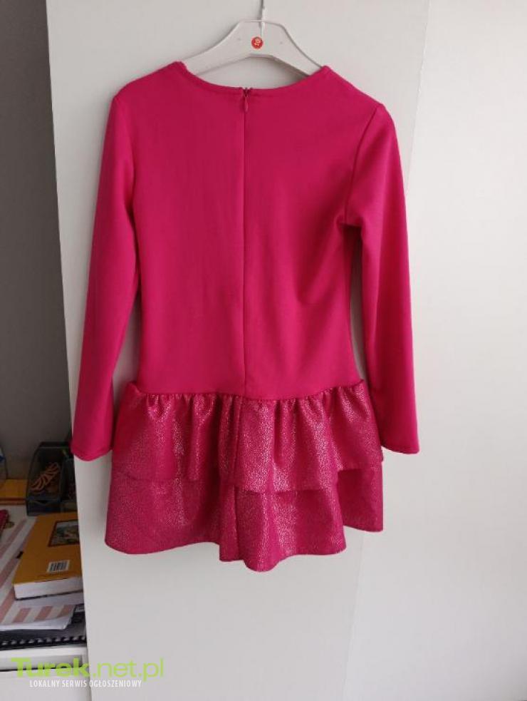Sprzedam śliczną sukienkę na dziewczynkę w rozmiarze 122 128 Stan bardzo dobry Materiał elastyczny Długość całkowita 62 cm Pachy na płasko 66 cm Pas na płasko 60 cm Biodra luźne