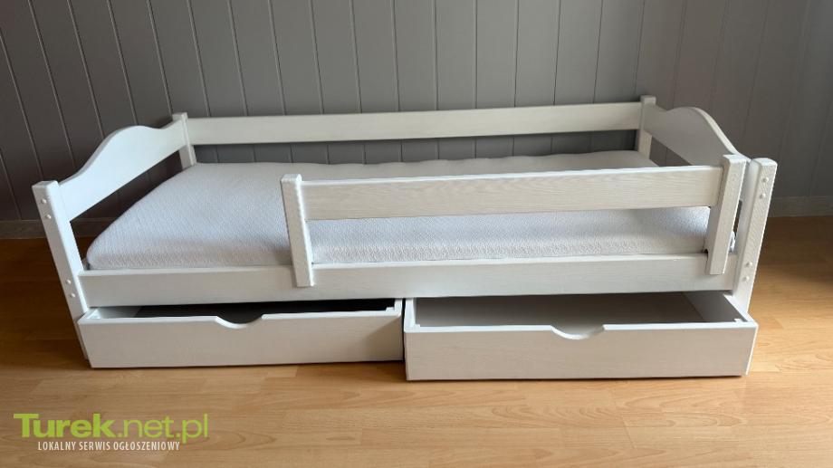 Do sprzedania łóżko drewniane dziecięce z materacem w białym kolorze szuflady. Barierka jest wyjmowana i może być założona z lewej lub prawej strony łóżka Stan idealny! W skład zestawu wchodzi: Rama łóżka Materac 2 szuflady na...