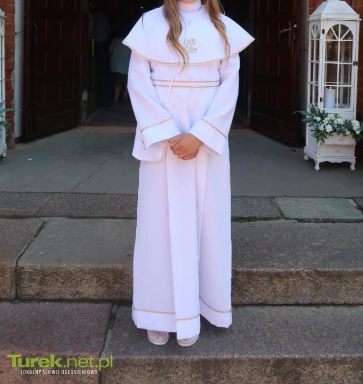 Sprzedam albę komunijną( komunia w kościele NSPJ w Turku) w zestawie z torebką, długość alby to 132 cm. cena 120 zł.