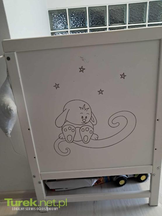 Sprzedam białe łóżeczko dziecięce ,normalne ślady użytkowania typu otarcia na białej farbie.