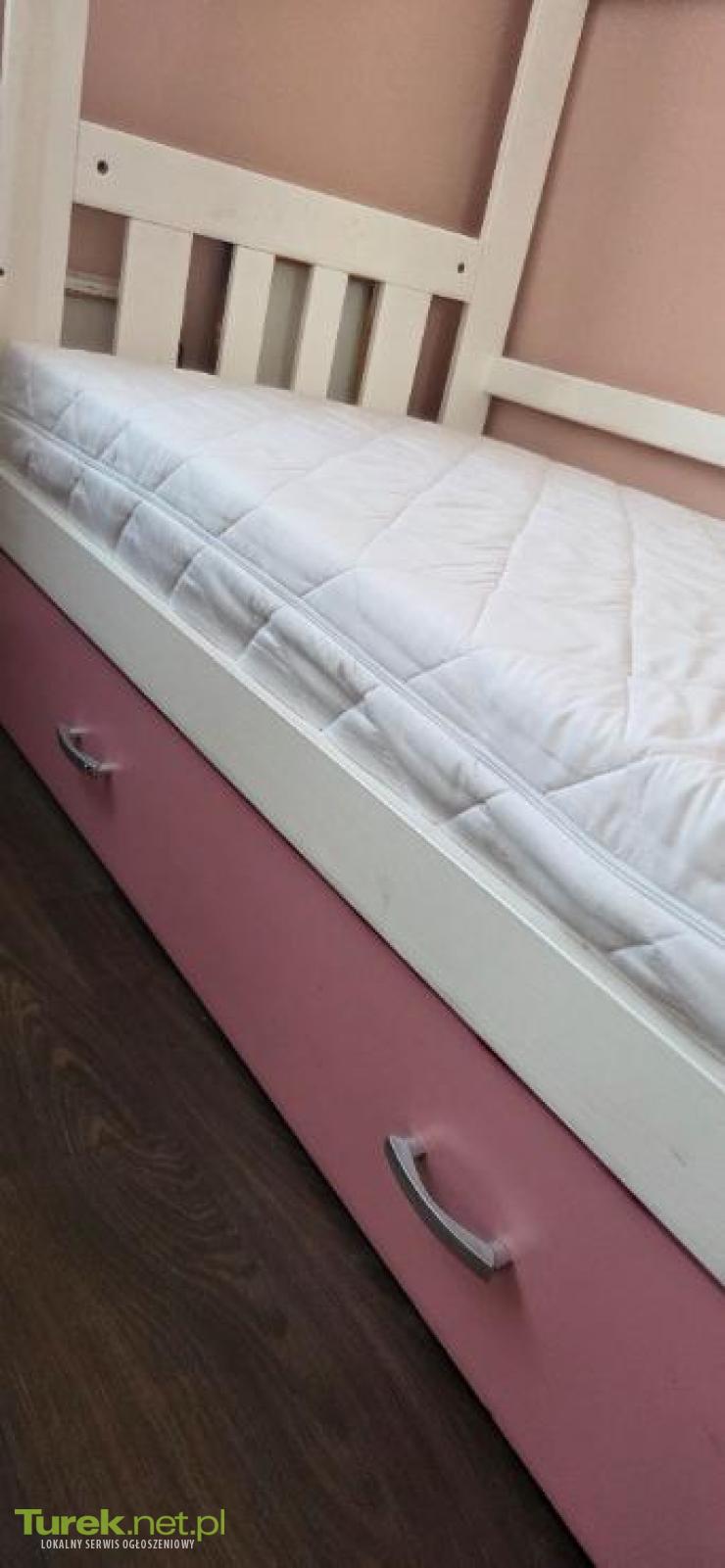 Łóżeczko dla dziewczynki Łóżeczko domek z pojemną szufladą, szczebelkami i materacem. Wymiary 165 długość x 85 x 180 wysokość. Materac grubość 17 cm, pianka i kokos.