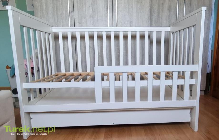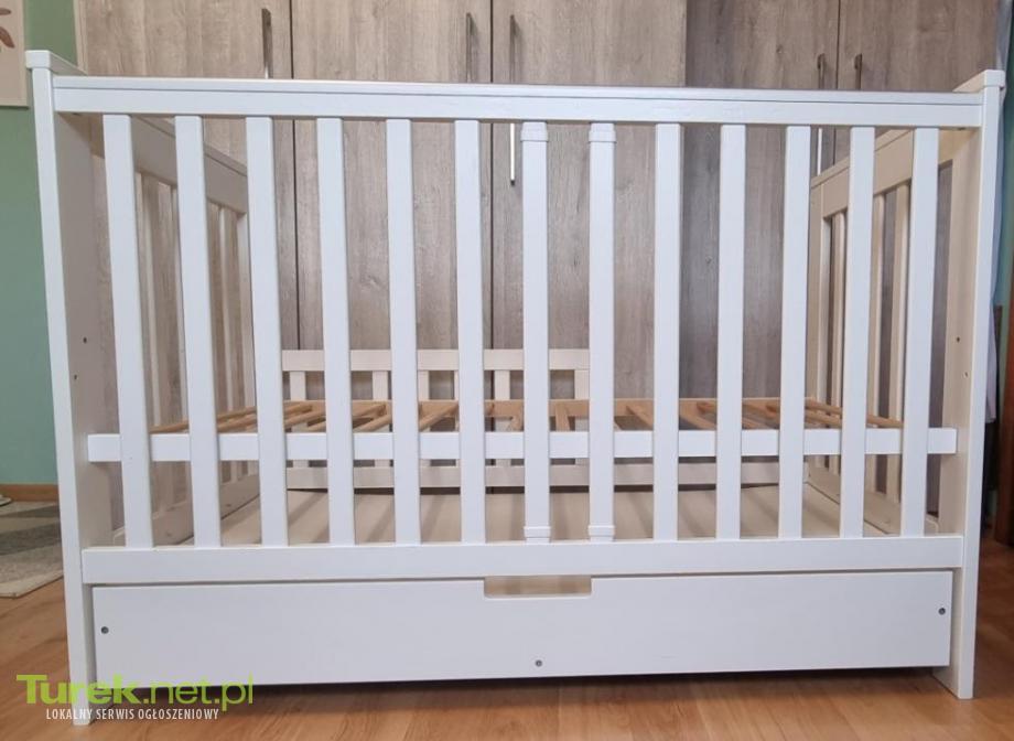 Sprzedam łóżeczko z szufladą, funkcją bujania, regulacją wysokości i opuszczanym bokiem. Stan bardzo dobry.
