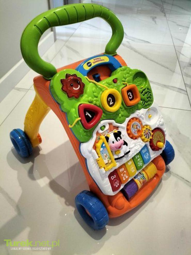 Karuzela stan idealny, marka Simpy Play, uspokajające melodie, dodatkowo wyposażona w projektor świecący wszystko sprawne, naprawdę polecam 65 zł Pchacz jeździk Gawędziarz marka Vtech, wszystko sprawne, służy zarówno do nauki chodzenia...