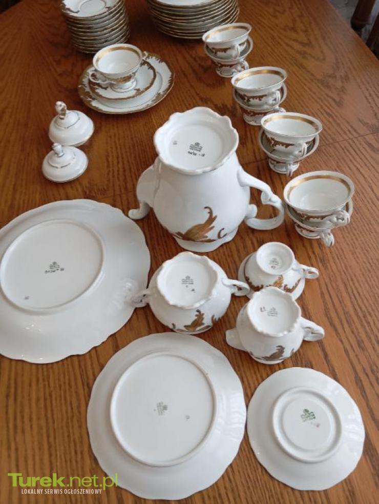 Sprzedam serwis kawowo śniadaniowy na 12 osób z Wałbrzycha złoty liść wyprodukowany w latach 70 stan witrynowy w skład wchodzi 12 filiżanek z podstawkami 12 talerzyków deserowych patera na ciasto dzbanek cukiernica i mlecznik więcej...