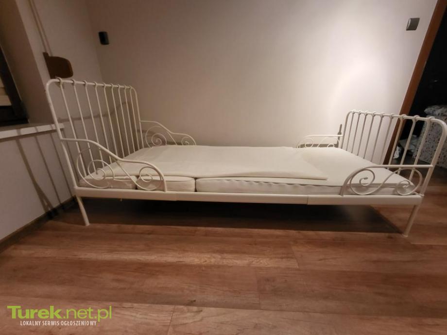 Sprzedam łóżko stalowe Ikea MINNEN o regulowanej długości, kolor biały, szerokość 86 cm długość minimalna 137 cm, długość maxymalna 207 cm, materac regulowany gratis, pokrowiec można prać. Rama posiada trzy regulowane...