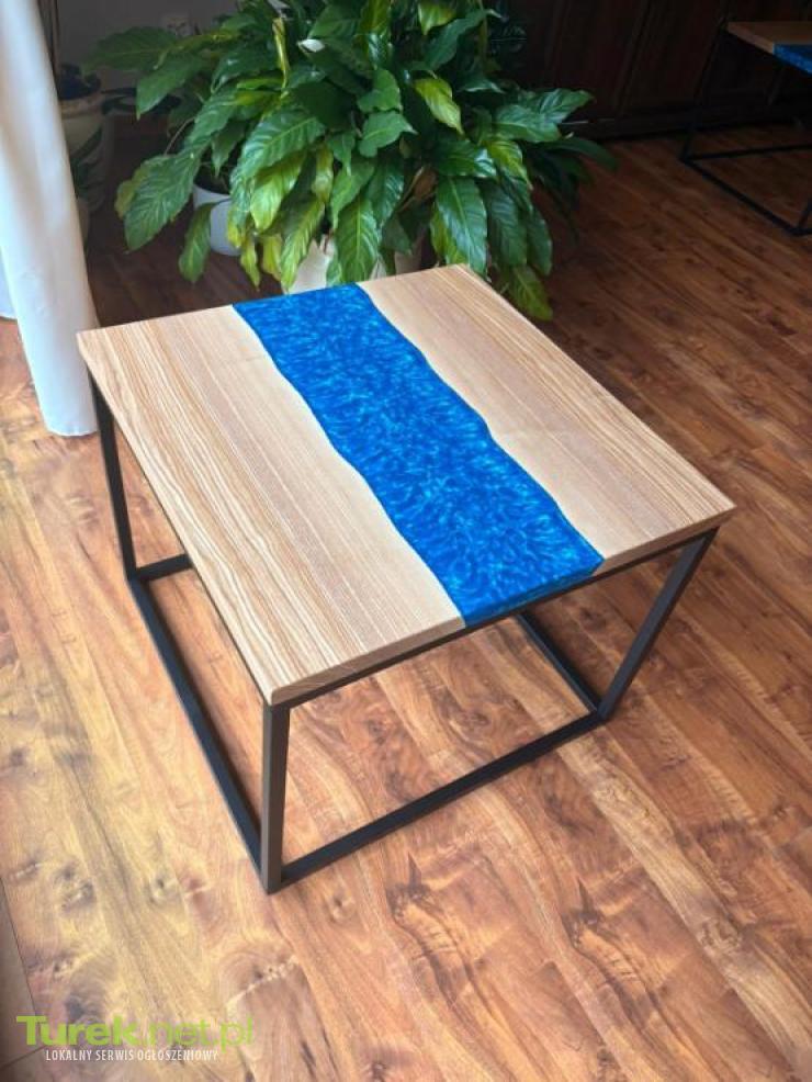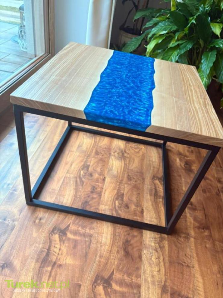 Witam. Posiadam na sprzedaż 2 stoliki kawowe z drewna jesionowego z wypełnienem żywicą epoksydową o wymiarach 60x60cm (600zł) i 80x60cm (800zł). Blaty wykończone lakierem.