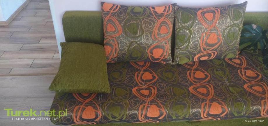 Sprzedam kanapę rozkładana, ma 2 duże poduszki i 2 mniejsze, Może służyć do spania dla 2 osob . Ma szufladę do przechowywania
