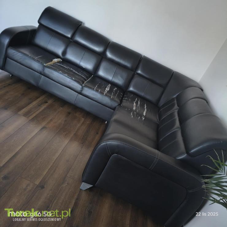 Sprzedam narożnik w czarnym kolorze wykonany z materiału skóropodobnego łatwy w utrzymaniu czystości. Posiada funkcję spania. Narożnik wygodny. Stan dobry widoczne przetarcia na części siedzisk. Skóra nie pęka na oparciach ani bokach....