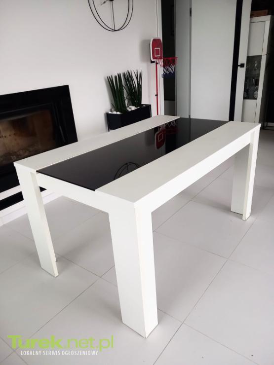 Sprzedam biały stół z czarną szklaną płyta po środku. Wymiary stołu 140x90 stałe.