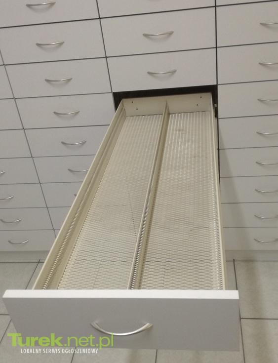 Meble apteczne używane system głębokiego składowania w bardzo dobrym stanie. Zestaw składa się z dowolnej ilości pionów od 1-go po wielokrotność w zależności od potrzeb klienta. Pion zawiera około 15 szuflad. Szuflada wyposażona jest...