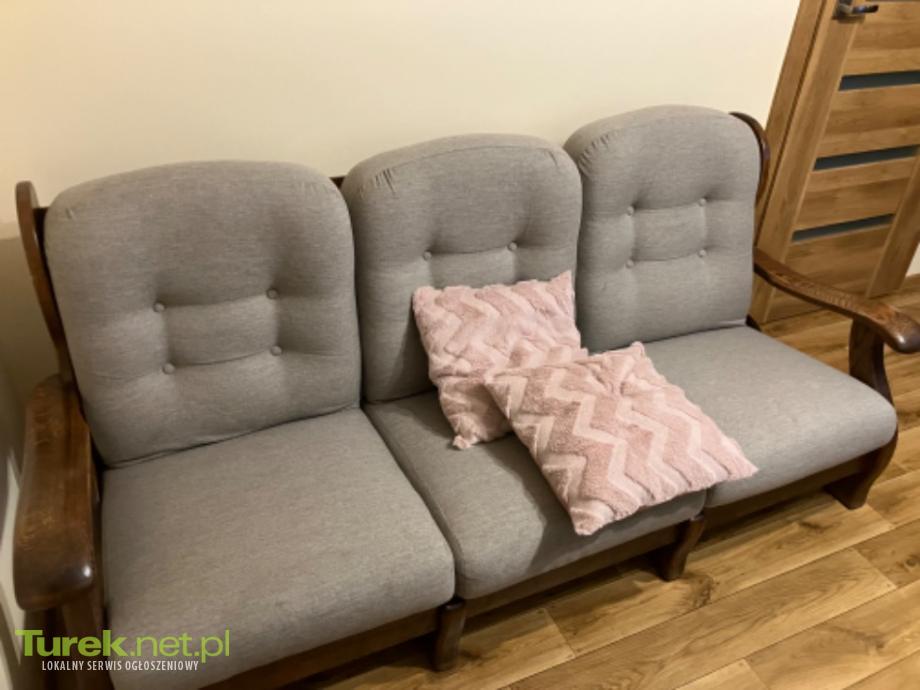 Sprzedam kanapę dwa fotele i stolik dębowe.