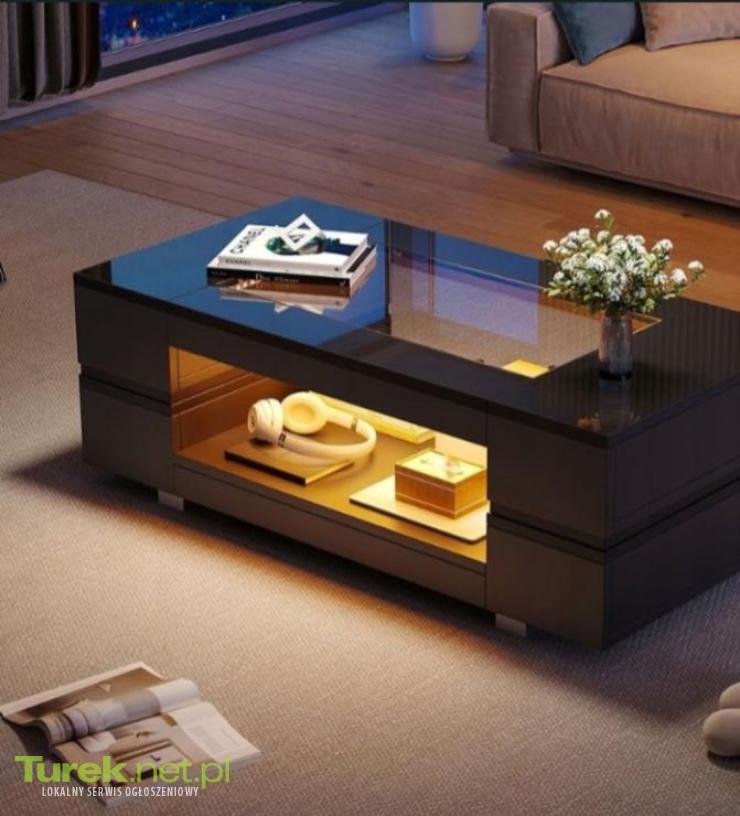 Specyfikacje Informacje o produkcie Kod produktu: N625P254687B Rodzaj produktu: Sam produkt Nazwa produktu: Czarny stolik kawowy LED z aplikacją Bluetooth, dwupoziomowy stolik z błyszczącym wykończeniem i wgłębionym wzorem, idealny na...
