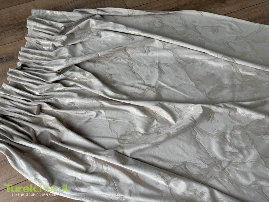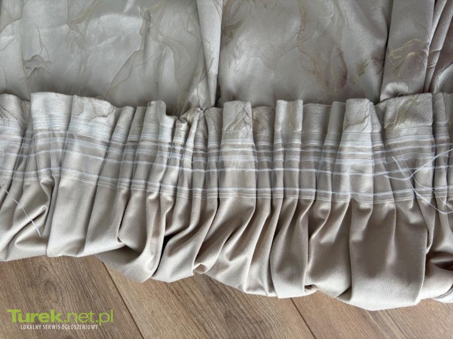 Sprzedam 2 sztuki zasłon na taśmie beżowych ze złotym wzorem. Firma zasłon eurofirany i wymiar 140x260.