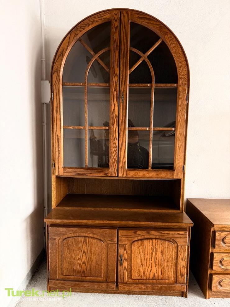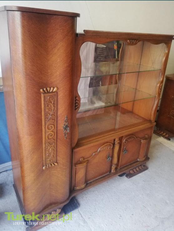 Sprzedam stare zabytkowe dębowe meble. Stan bardzo dobry. Staranne wykończenia rzeźbione. Meble są ciężkie, porządne. Wymiary komoda dł. 2 metry, wys. 90cm, szer. 52cm. Witryna dł. 140cm, szer. 40cm, wys. 152cm.