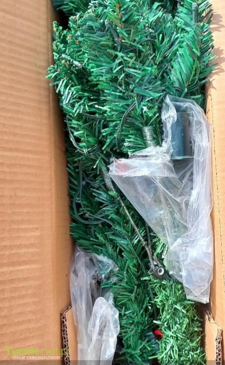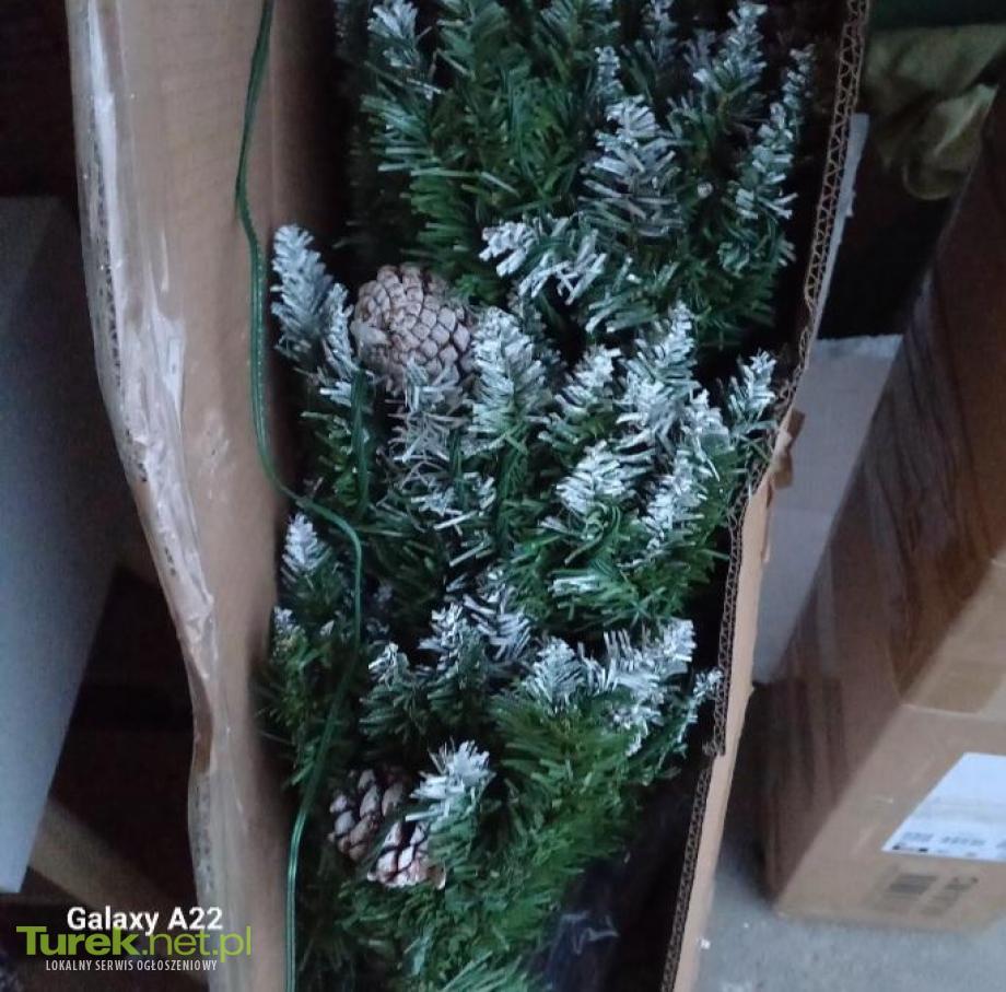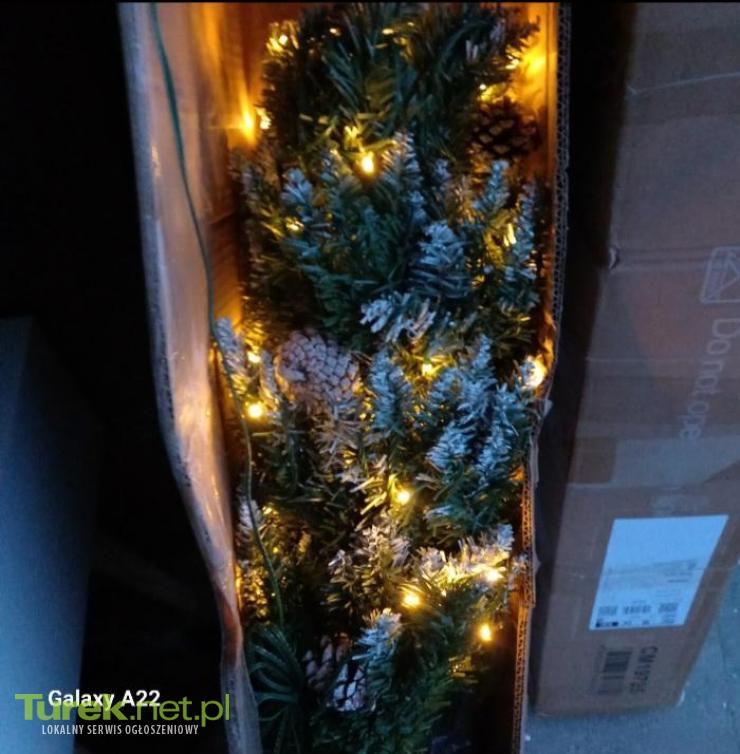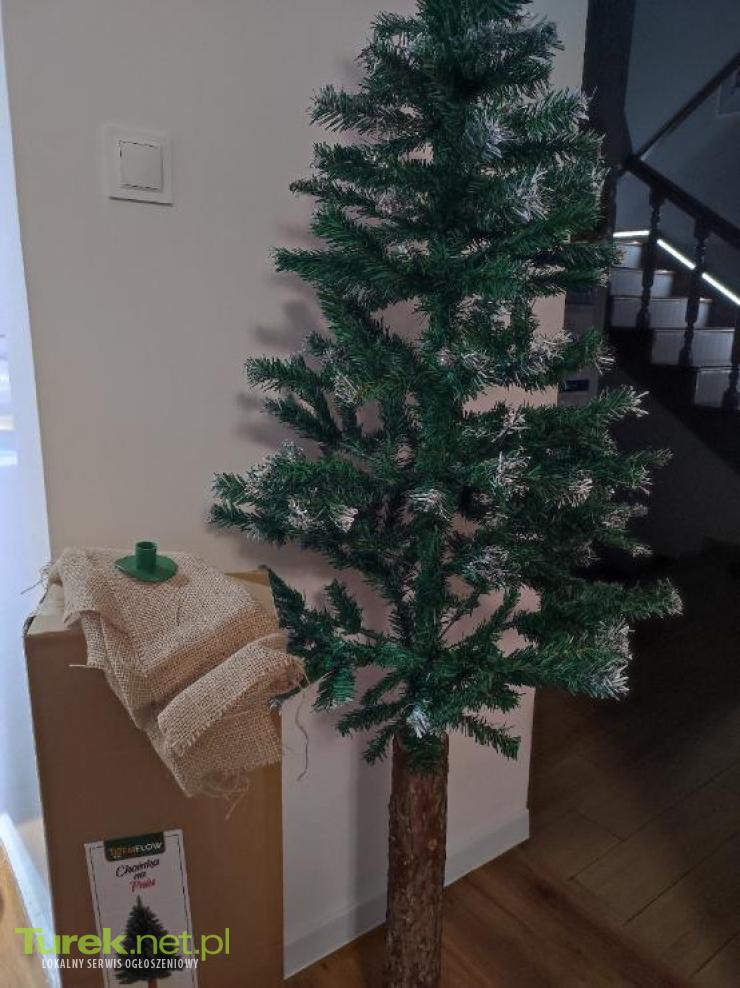 Sprzedam choinkę na pniu, nowa , rozłożona tylko w celu sprawdzenia. Gałązki na końcach bielone z delikatnym srebrzeniem. Wysokość całości 180 cm. W zestawie stojak i worek jutowy. Opakowanie otwarte . Stan nowa.