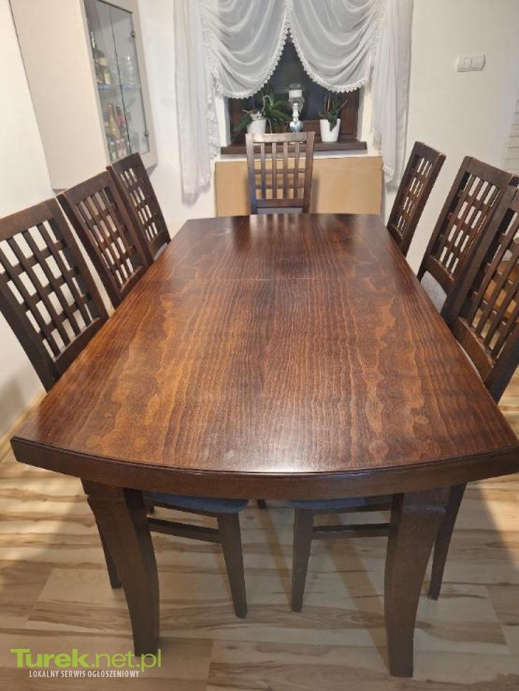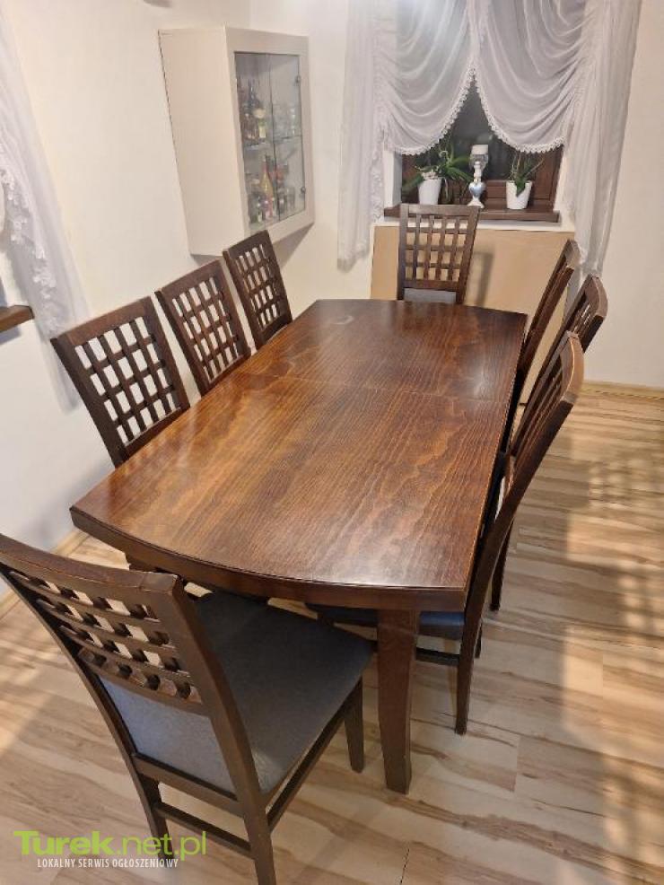 Sprzedam stół wymiary 90cm na 180cm a po rozłożeniu 240cm. Cena 500zl do negocjacji. Krzesła 8szt każde po 100zl . Do negocjacji.