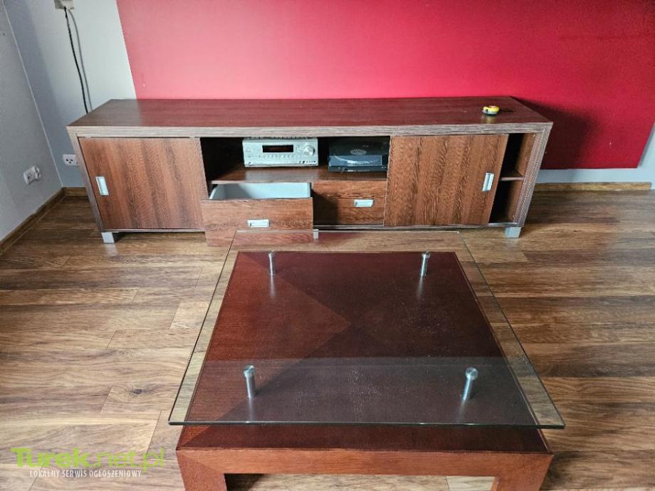 Sprzedam meble prezentowane na zdjeciu razem lub kazdy z osobna. Szafka rtv 100 zl , wymiary 250x70 cm, Stolik kwadratowy 100x100 cm, cena 150 stolik ma szklany blat pod nim funkcjonalna polka. Kupione w komplecie cena 200 zl.