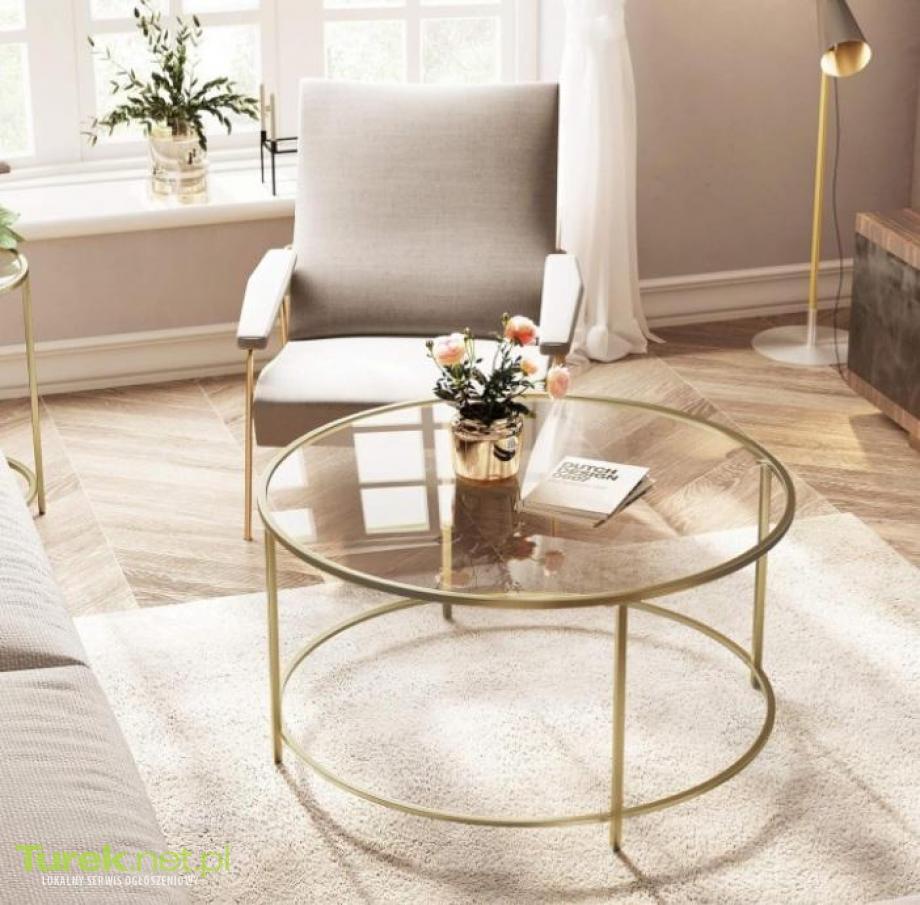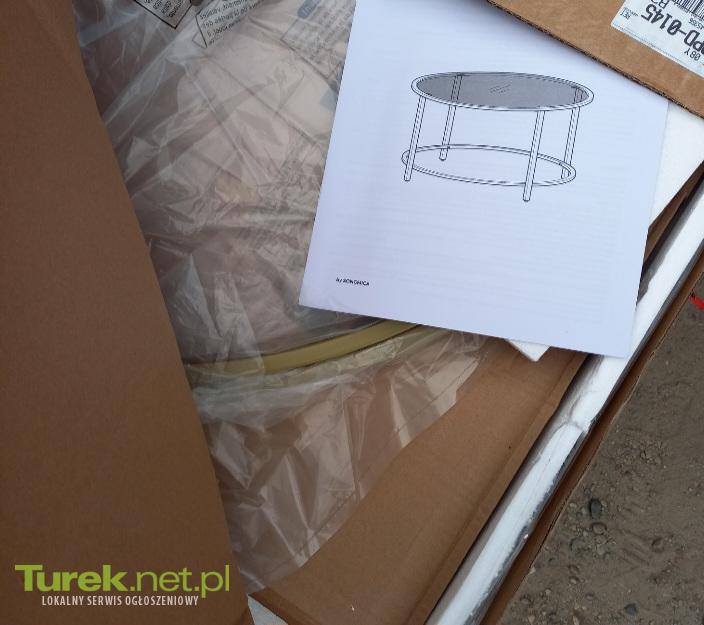 Sprzedam stolik 100x100 cm. Kolor braz, blat szklany, pod blatem polka. Bardzo efektowny, solidny mebel