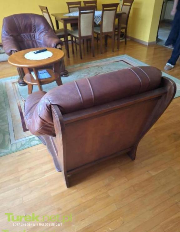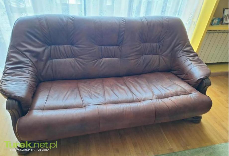 Zestaw mebli do salonu ze skórzanym obiciem. 1 sofa i 2 fotele.