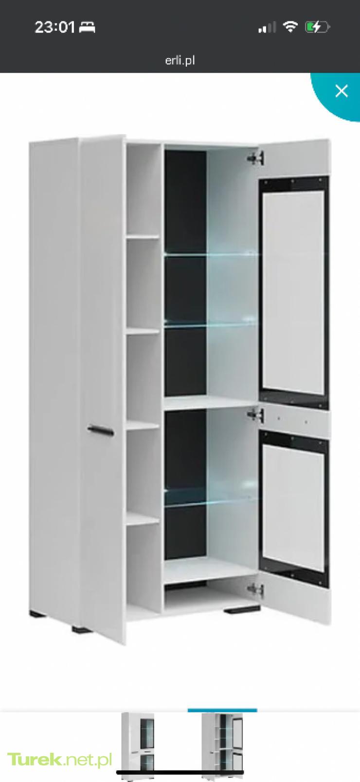 Sprzedam piękną witrynę z Black Red White. Z cichym domyciem. W połysku. Oraz szafkę RTV również w połysku , czarny mat. Cena witryny 350, szafka 300.