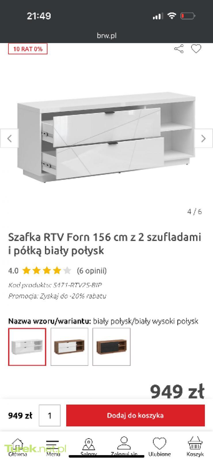 Sprzedam piękną witrynę z Black Red White. Z cichym domyciem. W połysku. Oraz szafkę RTV również w połysku , czarny mat. Cena witryny 450, szafka 300.