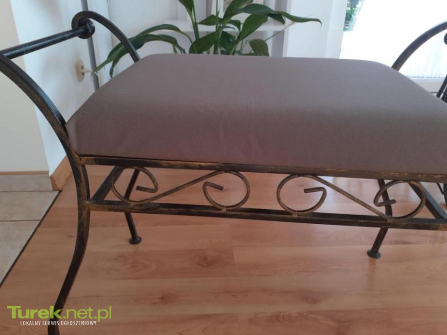 Sprzedam piękny komplet mebli z metalu, solidne wykonanie, brak uszkodzeń. Meble to metaloplastyka, posłużą lata. Wieszak ciężki i stabilny, wysokość 192cm, siedzisko z wygodną poduszką wymiary 69cm długości x 35 x45, stolik ze...