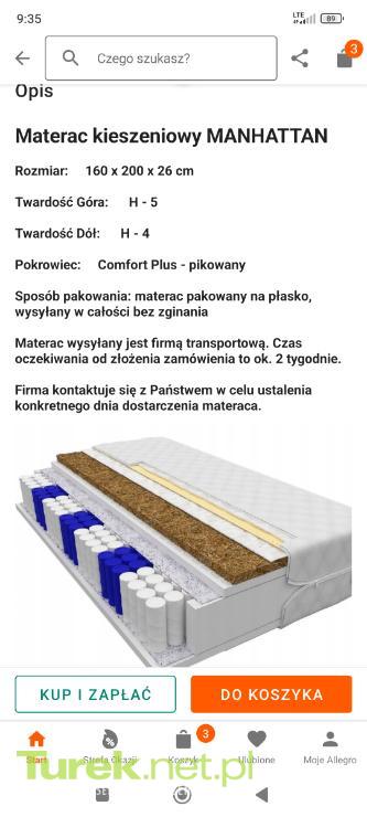 Sprzedam materac o wymiarach szerokość 160cm, długość 200cm, wysokość 26 cm. Materac w bardzo dobrym stanie. Zakupiony od polskiego producenta. W załączeniu zdjęcia z opisem przedmiotu. Nie odpowiadam na SMS.