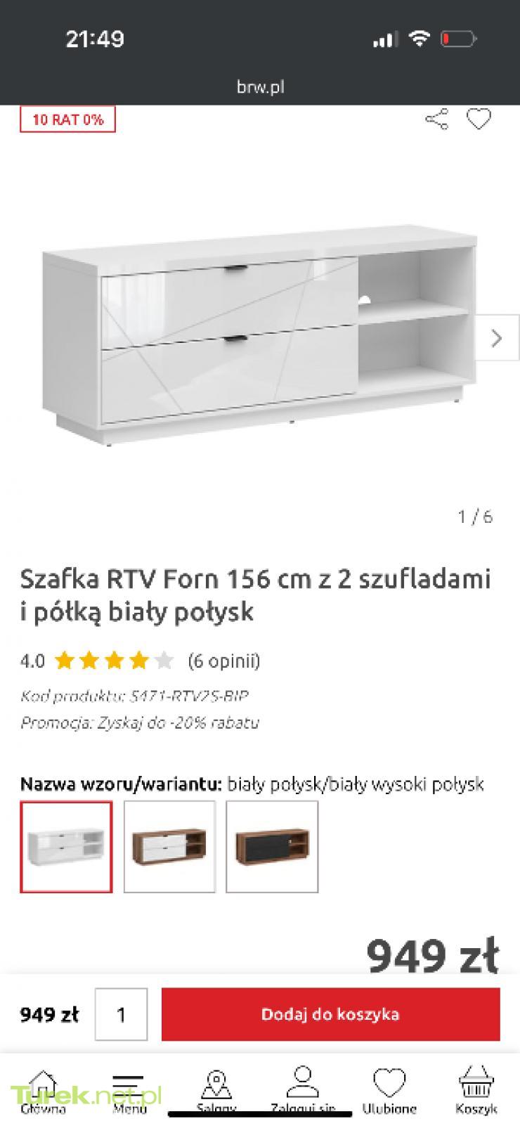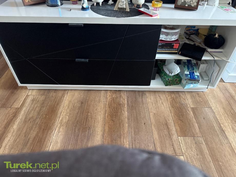 Sprzedam szafkę RTV, dwie szuflady i dwie półki. Szer 156 cm , głębokość 42, wysokość 62 cm. Biały połysk i czarny mat. Stan idealny. Bardzo ładnie się prezentuje