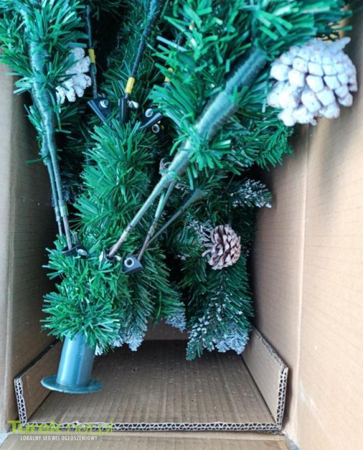 Nowa choinka wąska do małych pokoi osnieżala z szyszkami