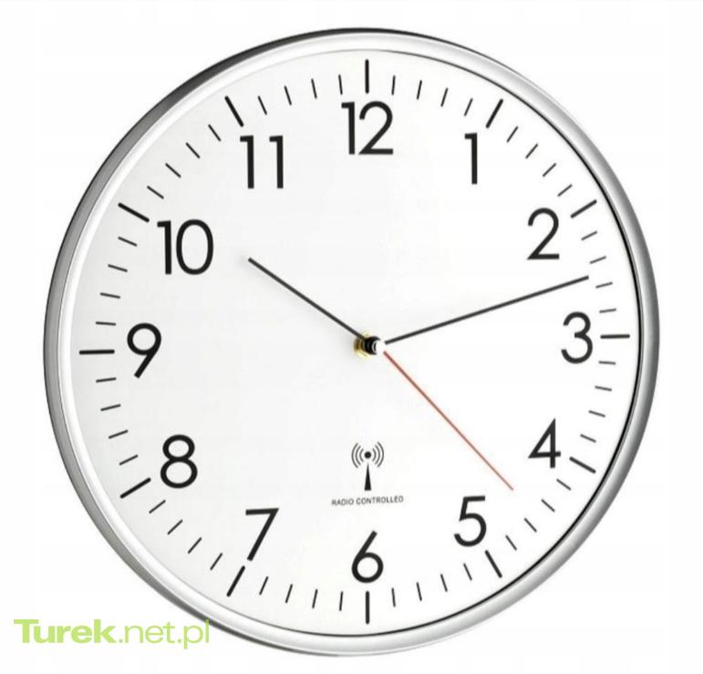 Zegar ścienny TFA Dostmann Wymiary: ok 32cm. zegar TFA zachwyca swoją jakością i jest wykonany ze szkła i srebra tworzywa sztucznego. Zasilanie: w celu zasilania analogowego radiowego zegara ściennego potrzebne jest 1xbateria (brak w...