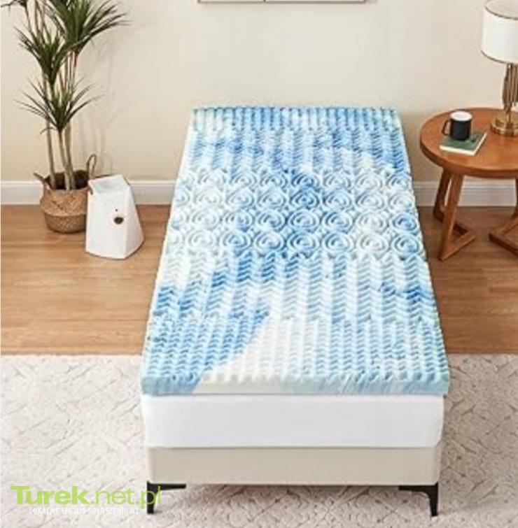 Pianka profilowana 90x200 niebiesko-biala Pianka posiada 7 profilowanych stref, które pod wpływem ciężaru ciała pasywnie masują mięśnie w trakcie snu. Pianka profilowana polecana jest dla osób z bólami pleców, skłonnościami do...