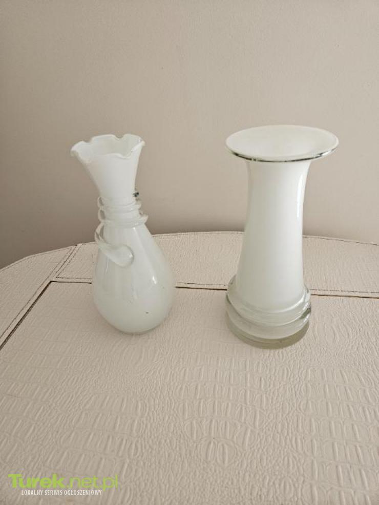 Sprzedam dwa wazoniki szklane z bialego mlecznego szkla. Wysokosc wazonika 17 cm