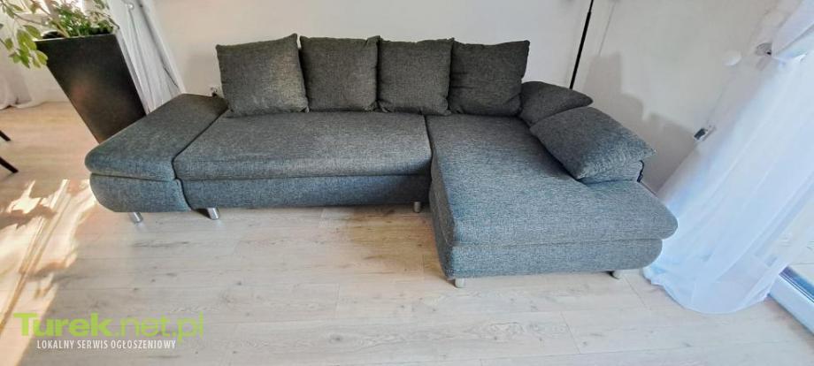 Sprzedam narożnik z funkcją spania.kolor grafit. Zdejmowane poduszki,pojemnik na pościel. Wym 290x150cm