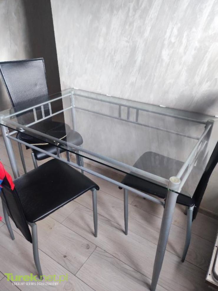 Sprzedam szklany stół. Normalne ślady użytkowania . Może komuś jeszcze posłuży. Jeśli ktoś będzie chętny dorzucę 3 krzesła w kolorze czarnym z eko skórki Wymiary stołu 120x75
