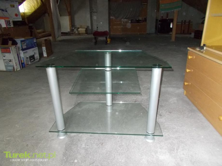 Sprzedam ładny stolik szklany pod telewizor. Blad jest w kształcie trapezu o wymiarach: przód 87 cm, tył 60 cm, wysokóść 60 cm. Całoć stoi na metalowych 3 nogach. Pod blatem jest druga półka. Stan bardzo dobry. Polecam. Cena 70 zł do...