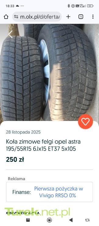 Sprzedam koła zimowe 195-55-15 felgi stalowe 5x105 rozstaw śrub 2 opony Barum 2 semperit w dobrym stanie około 6 mam bieżnika jeździły ma polu astrze j 1.4 benzyna