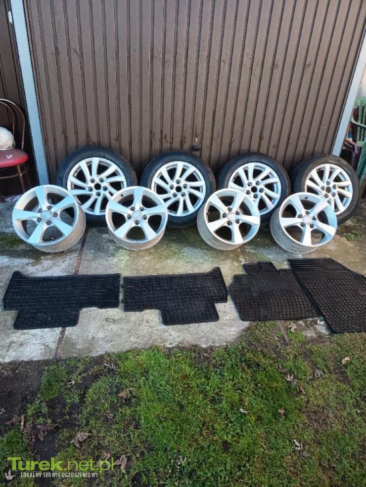 Sprzedam komplet felgi aluminiowych z oponami zimowy mi 205x55x16.Drugi komplet felgi: felgi pasują do mazda lub kia 5x114.felgi są w dobrym stanie cena za 1 komplet. 480zl drugi kompl. 430zl oraz komplet dywanikow do Reno scenic 2 za 80 zł