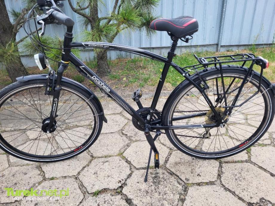 Sprzedam rower niemiecki Prophete Entdecker 350 , rama aluminiowa, osprzęt Shimano biegi 3/8, amortyzowany przód oraz siedzenie, oświetlenie sprawne, stożkowe wzmocnione koła, opony stan bardzo dobry.
