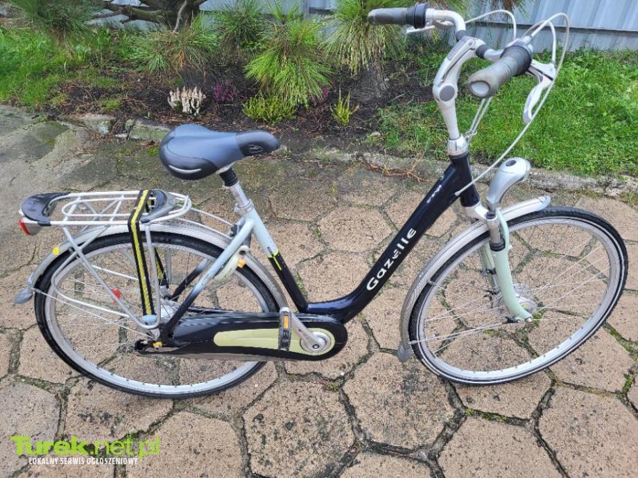 Sprzedam rower Gazelle Chomonix Excelent, koła 28, rama aluminiowa, osprzęt Shimano Nexus 8, amortyzowany przód oraz siedzenie, oświetlenie z przedniej piasty, regulowany mostek kierownicy, blokada AXA, dzwonek w rączce, nowe linki oraz...