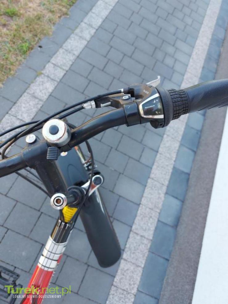 Sprzedam rower Trekkingowy Union koła 28, rama aluminiowa, osprzęt Shimano Nexus 7, oświetlenie z przedniej piasty, amortyzowany przód, blokada AXA, stożkowe wzmocnione koła, opony stan bardzo dobry, w zestawie pompka.