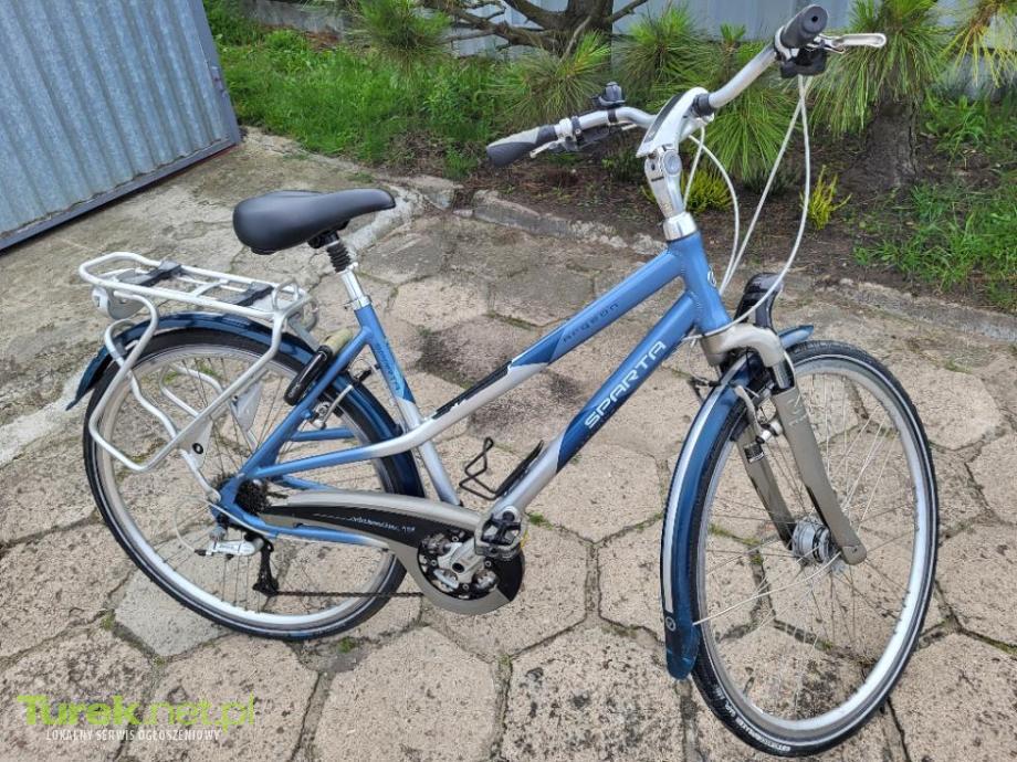 Sprzedam rower holenderski Sparta koła 28, rama aluminiowa, osprzęt Shimano Deore, amortyzowany przód oraz siedzenie, oświetlenie z przedniej piasty, blokada AXA, regulowany mostek kierownicy, stożkowe wzmocnione koła, opony stan bardzo...