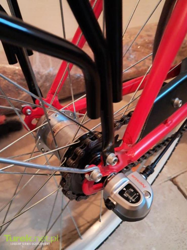Sprzedam rower niemiecki Staiger koła 28, rama aluminiowa, osprzęt Shimano Nexus 8, amortyzowany przód oraz siedzenie, oświetlenie z przedniej piasty, stożkowe wzmocnione koła, opony stan bardzo dobry.