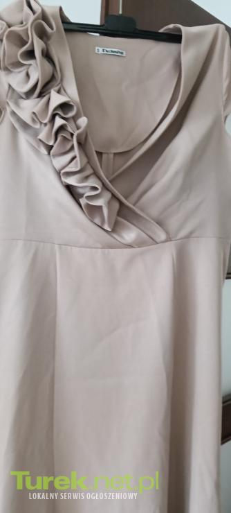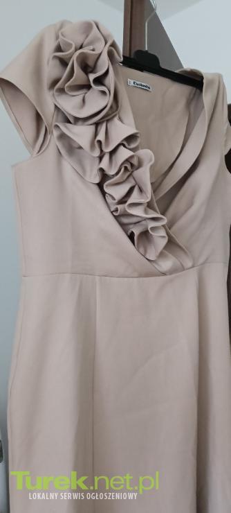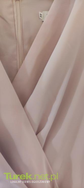Do sprzedania sukienka w kolorze pudrowego różu,w rozmiarze L. Długość 143 cm, szerokość w ramionach mierzona na płasko 39 cm, szerokość w pasie mierzona na płasko 88cm. Z boku sukienki delikatne rozcięcie. Założona tylko raz, stan...
