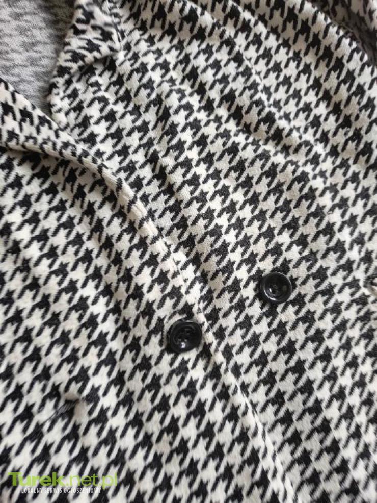 Sprzedam płaszcz dzianinowy Zara,zapinany na 2 guziki, zapięcie regulowane, długość całkowita ok 105 cm, szerokość pachy 66