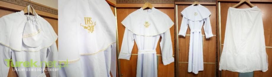 Sprzedam albę komunijną( komunia w kościele NSPJ w Turku) w zestawie z torebką, długość alby to 132 cm. cena 120 zł.
